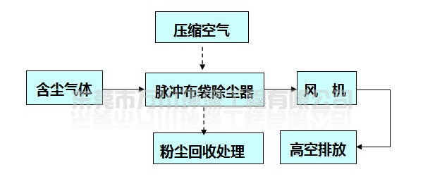 根據榮科公司的實際情況和以往的案例經驗,我們技術人員依據國家及地方關于環保的法律和法規、工業企業設計衛生標準(TJ36-79)、《廣東省大氣污染物排放標準》(DB44/27-2001)、《三廢治理工程技術手冊》廢氣卷,經過對廢氣污染物和現有的處理技術的綜合分析,認為該廠所產生的粉塵適合采用干式除塵法,所以我們為榮科公司設計了一套風量為35000m3/h脈沖布袋除塵器