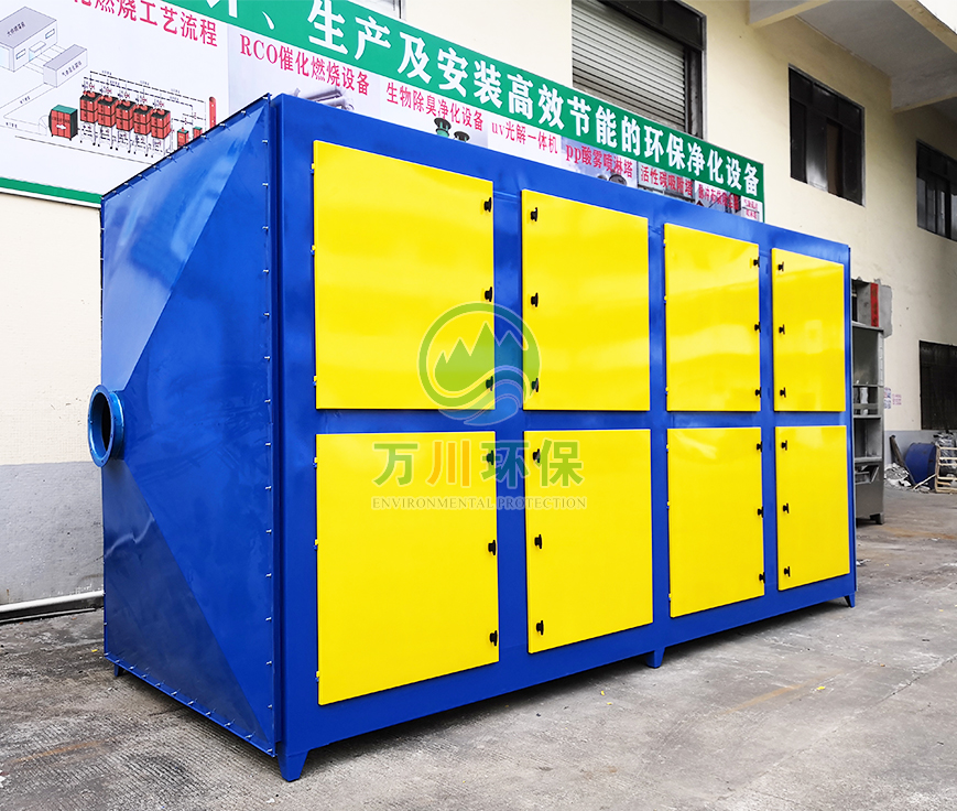 橡膠廢氣從管道進入到設備內,穿過第一層噴淋層,用水沖洗廢氣,再進入到第二、第三層填料層,去除水溶性的粉塵和廢氣,最后進入到活性炭吸附層,利用活性炭的吸附力,吸附有機廢氣,達到凈化的效果。